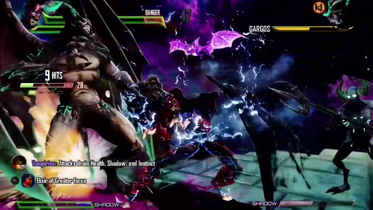 So much for that… The best strategy I use is make sure with the 1st or 2nd character leave Gargos with low health so the 2nd (or 3rd) character can ultra him or KO him ASAP and start the match like he started with 50% health (full red lifebar) and unleash everything I have to destroy Gargos.