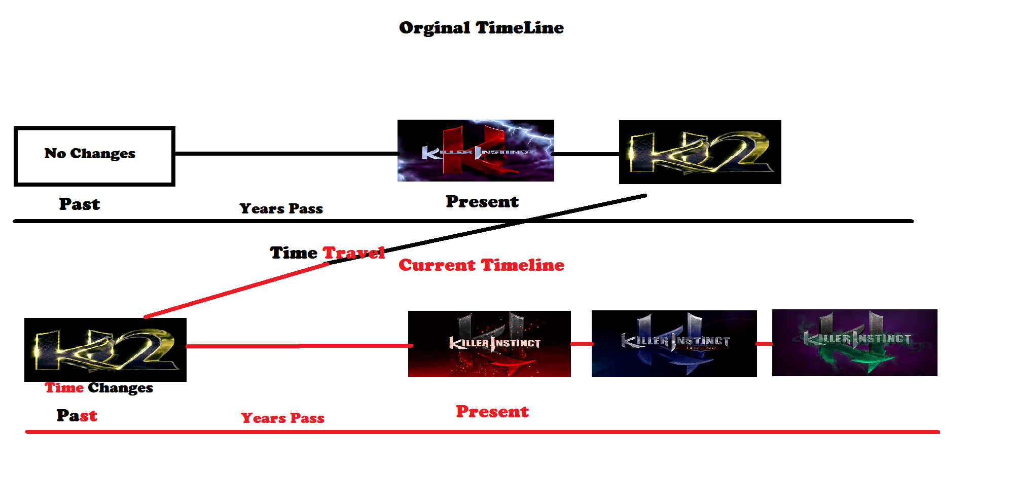 What about the fact that in the Orginal games (KI2) they went back in time and changed events which could have made a completely different timeline which is now the current KI. That is what makes sense to me and it connects the Orginal game with the current one without the current one having to use time travel at all because of all the events happened differently in this timeline sort of like how Time Travel works in Dragon Ball Z with Trunks warning the main timeline about the androids, Trunks Timeline stayed the same but the main one changed completely so that would mean the Orginal Killer Instinct is our Future Trunks timeline to our Reboot Killer instinct which is the main timeline if you get what I mean.