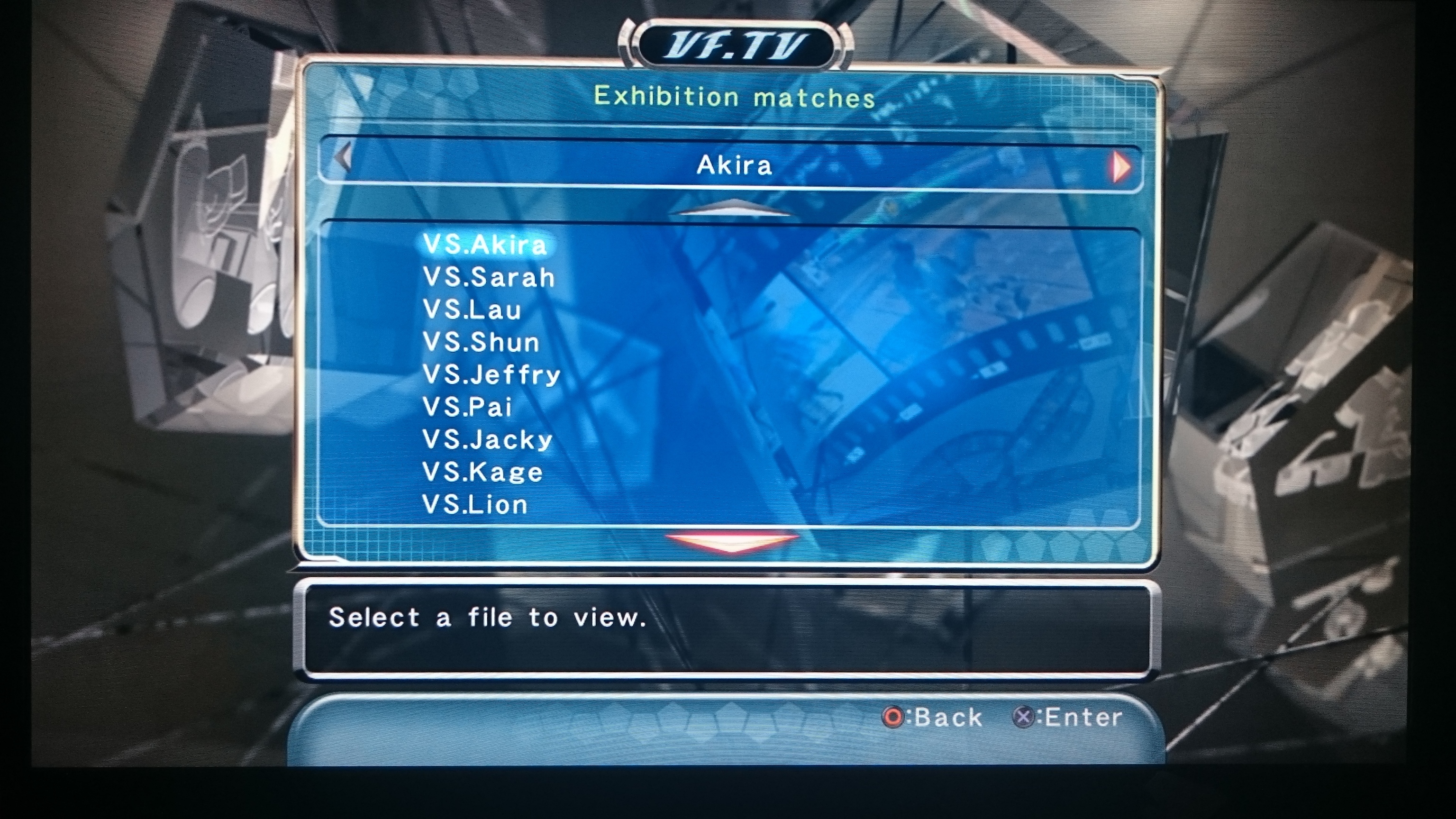 In Virtua Fighter 5 they also have a feature called VF.TV, which also allows you to view Cpu v Cpu exhibition matches.