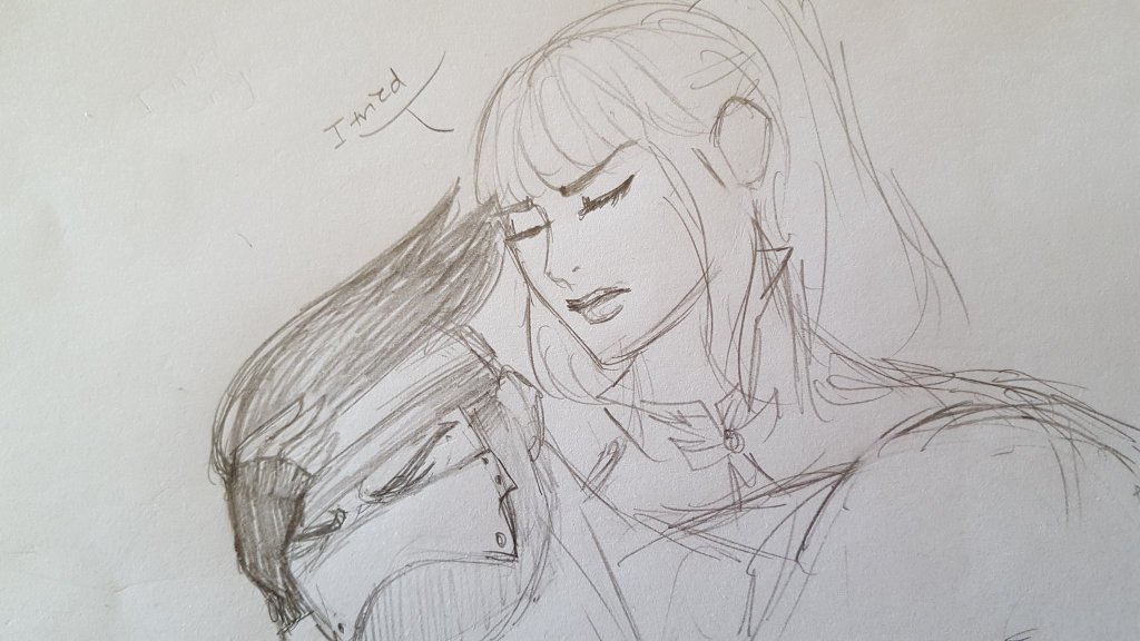 Here’s a random doodle after being inspired from the arts of KI novella with some Manga style happening after an “accidental contact.” (sry can’t help but to add the dragon in this too after reading CHapter 3)