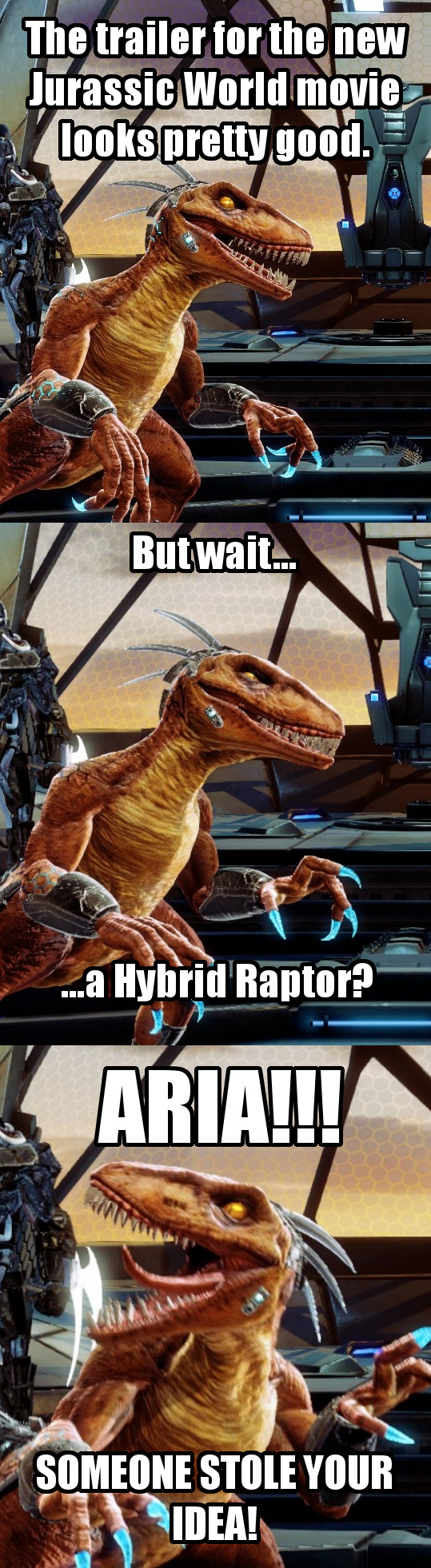 (Riptor appears behind me snarling)