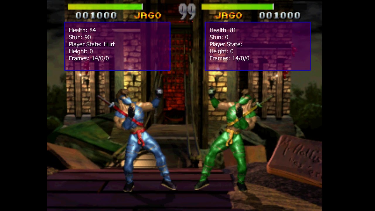 I’m mainly using the built-in MAME debugger to search program memory for variables. I’m having trouble locating the address for active and recovery frames for moves (they are nowhere near startup it seems) so help is appreciated (PM me or something).