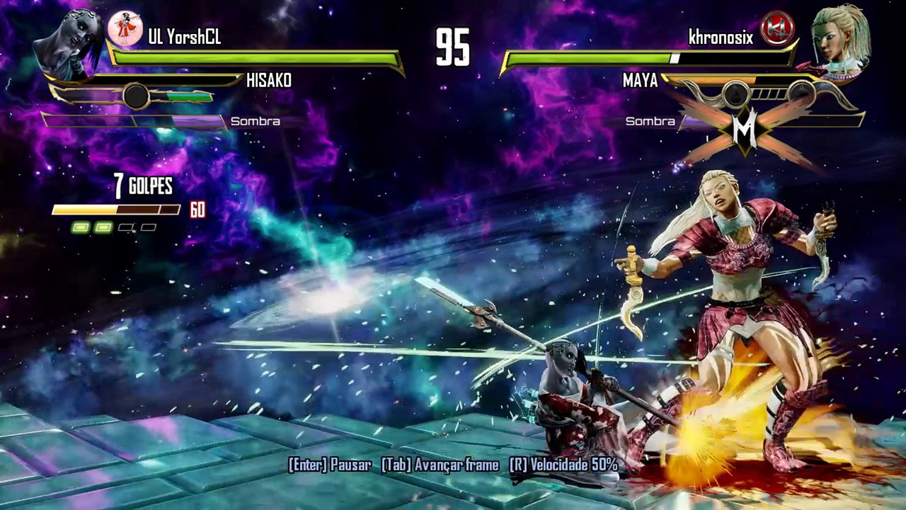 I think maybe I noticed a pattern: when he sees me in hard knockdown state he tries heavy to cross me up, and lights during soft knockdowns. Another problem is this guy is super reactive! When I block the air orz he manages to block my light punches very fast and he also grabs 100% of my throw attempts.