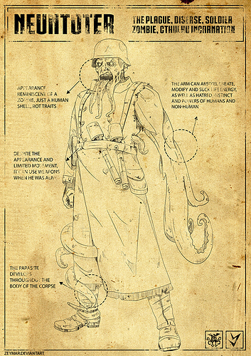 @Zeybuccaneer had the coolest idea for a Lovecraftian character that also merged another favorite trope of mine, the undead “natzee” soldier: