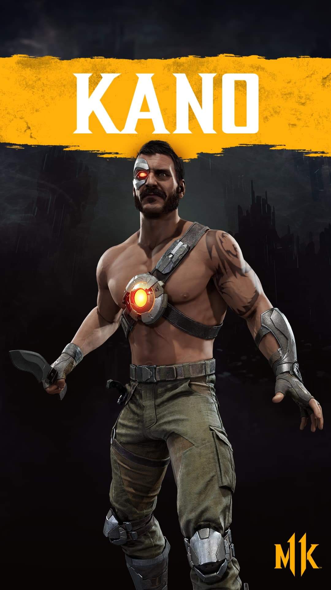 As a Kano main Im not liking this look too much. I dont like how the heart battery is in the center of his chest. I prefer the MK X look of the heart core and the facepiece and how the wires run up his back/neck and over to the side of the eye piece. So hoping there is a MKX skin.