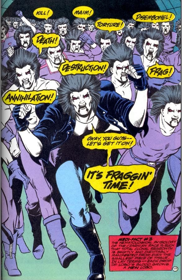 Indeed. Plus, his Czarnian physiology in itself would make for interesting gameplay, be it his regenerative abilities or his blood powers (in the comics, notably in “L.E.G.I.O.N.”, every drop of blood spilled from Lobo would instantly create a fully fledged clone).