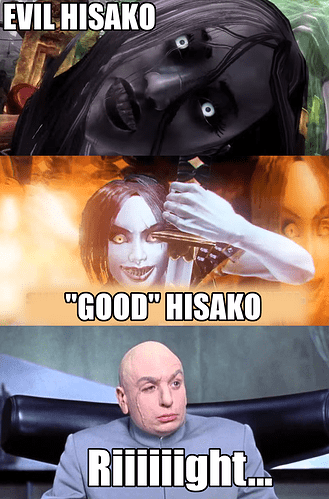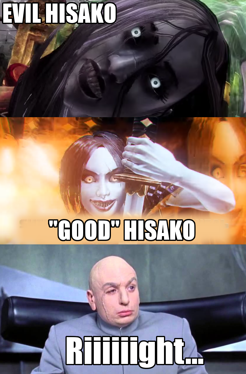 Regardless of what side Hisako aligns herself with, the default version of her is the angsty, gross revenge driven version that ācorruptedā or whatever. Hence the āevilā moniker.