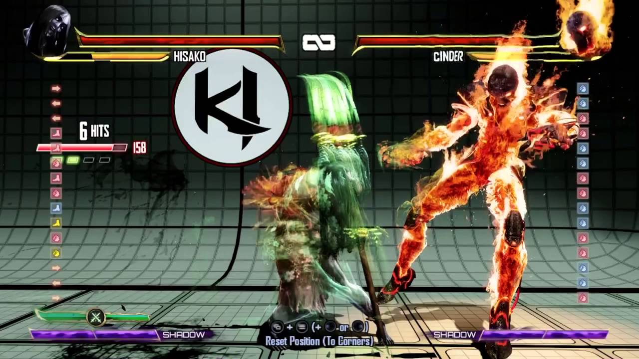 However, let say you block Cinder’s first hit and he does two jabs that are part of the Target Combo as Hisako does the Shadow Counter off of the first jab, she gets hit by the second jab and the game strangely locks up and the only way to get out from this situation is to do a Shadow Move. It is possible to attack but unless Hisako has no meter, the game cannot continue. Worse, if you restart Training Mode after the glitch without doing another Shadow Move, you have to restart the entire game. While this may sound funny, you don’t want such a situation in Ranked Leagues or in a Tournament Match. I did provide a video with commentary for the actual situation. Keep in mind it only works with the first two jabs from Third Degree by Cinder. I guess it could also work with chain jabs from any other members of the cast.