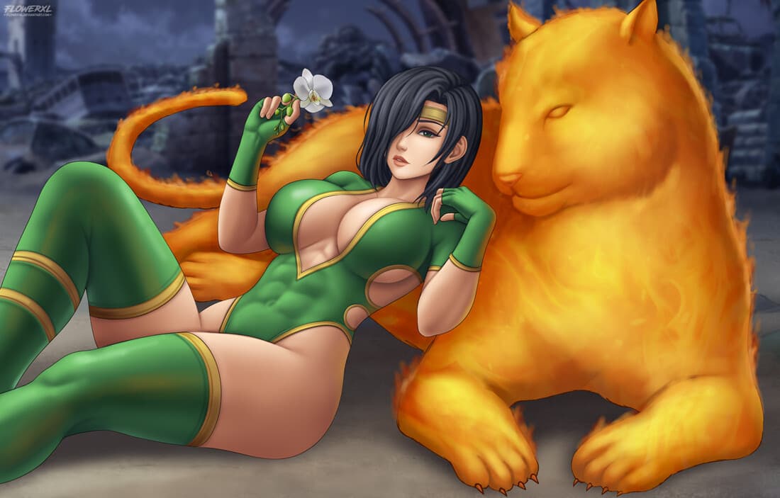 Notable changes| He has a facemask on, a “1st Place” winners sash around his torso to hold his sword in place, the weapon he wields is a slightly modified katana from Samurai Goroh from the FZero series, and his left sleeve has been completely destroyed, revealing his tiger tattoo. Sorta like Paul from Tekken 8.