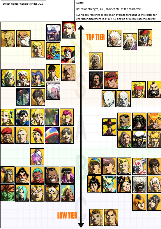 .Everybody rankings based on an roguh average throughout the series for character placement (e.g. Juri F.S engine or Bison’s psycho power)