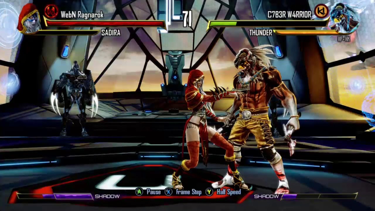 The match begins like normal. The Thunder player is decent enough, but has a really hard time breaking my attacks. He gets me into a corner, and as soon as I pop Instinct, the lag begins. This isn’t just any lag though. My Instinct is rendered completely useless and I can barely move. Once my Instinct is spent, the lag stops. Unfortunately due to the lag, the match is now desynced. So much of what you are seeing isn’t what is actually happening.