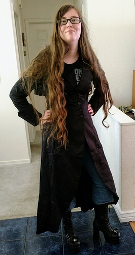 But I got hers just in time. She’s really into Goth stuff so I got her a nice hooded trench coat and some knee high platform boots