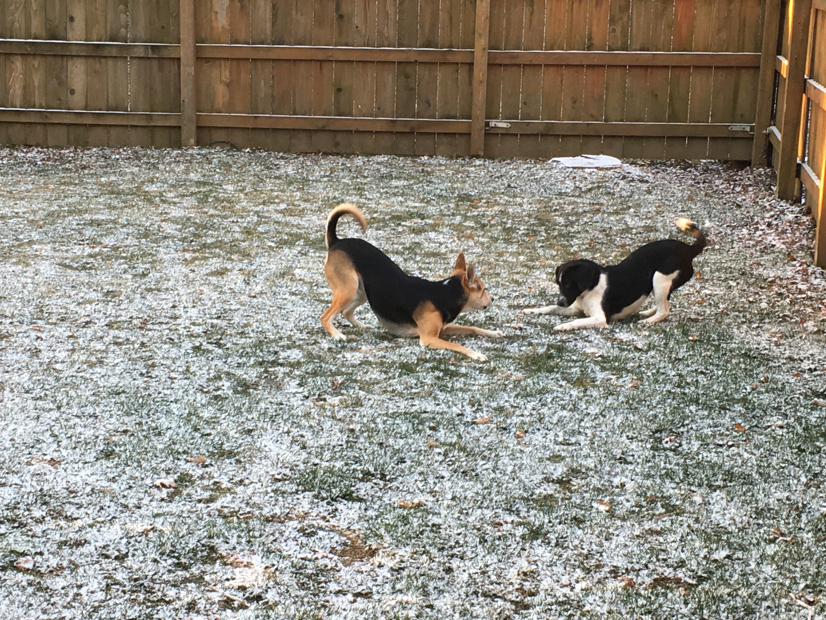 Here she is with our other dog, Bally. They’ve quickly become best friends and zoom buddies.
