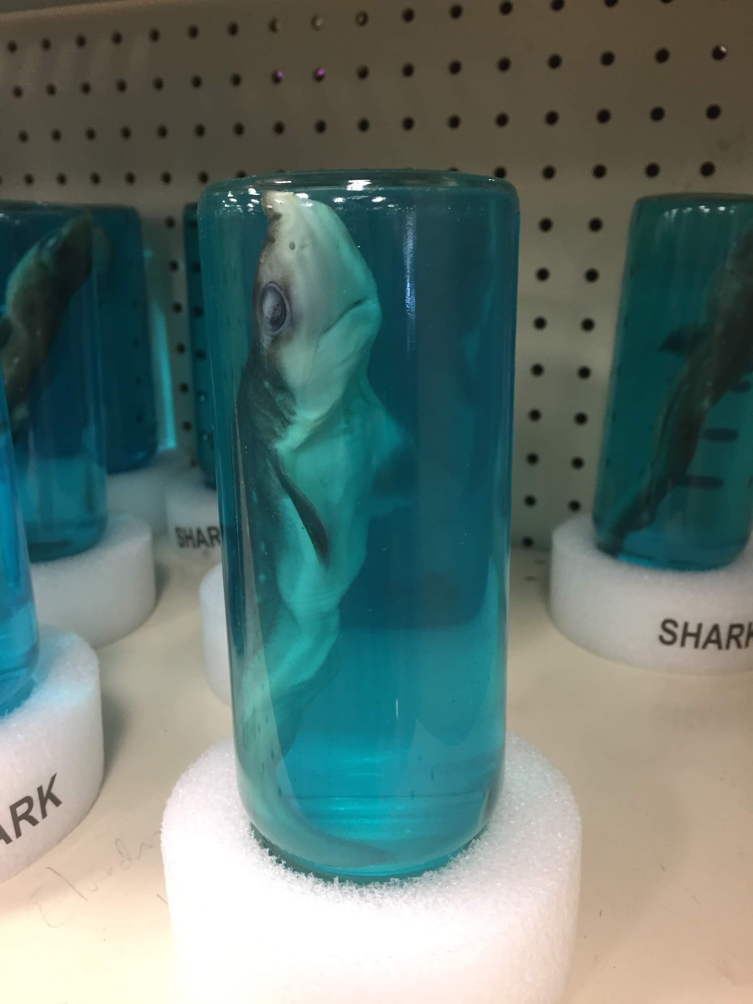 So my parents and I are out of town for vacation, we had great time until I found dead baby shark in the jars at Sharkheads Souvenir City today, and I really don’t want to look at them long since it’s very disgusting thing I’ve ever seen. Poor them…