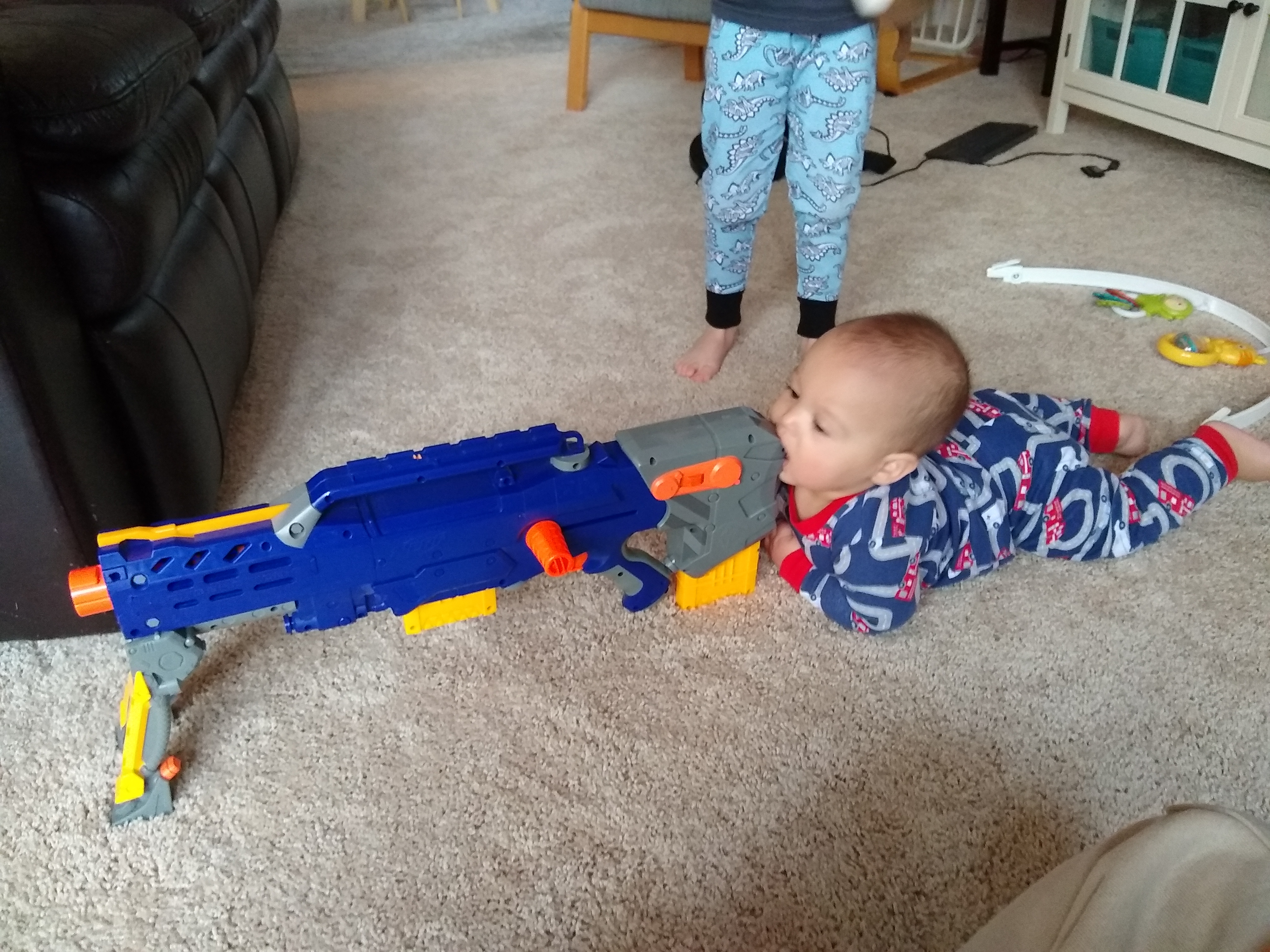 Baby Code has been sleep trained, which has been a huge improvement on our lives. He’s also been getting really good at eating solids unbelievably quickly. He’s started getting into sitting by himself, and he’s doing a little bit of crawling and cruising. He babbles well too.