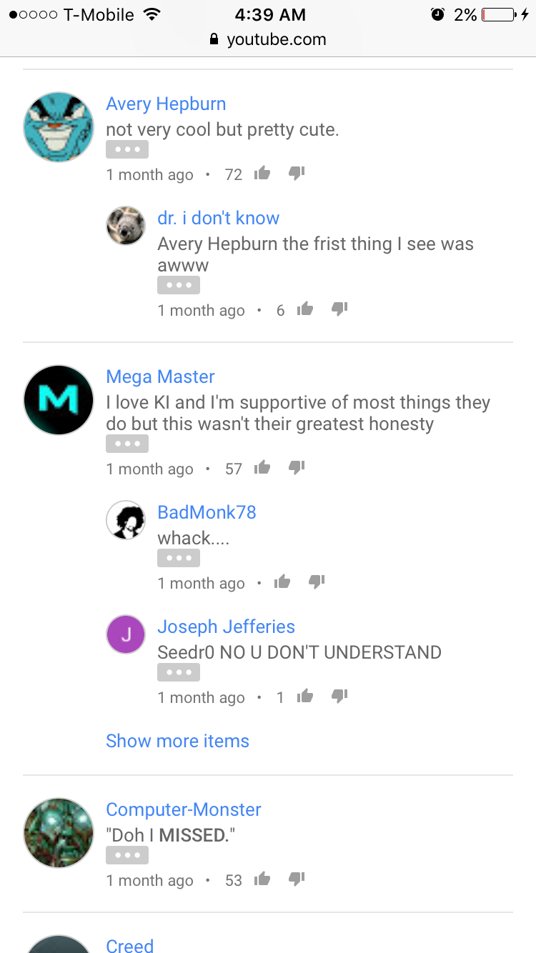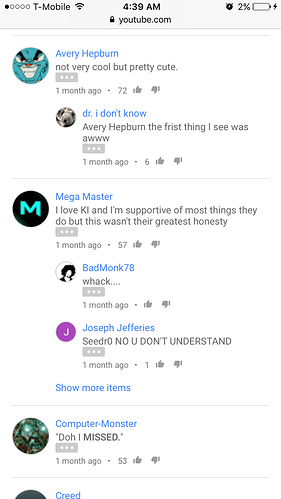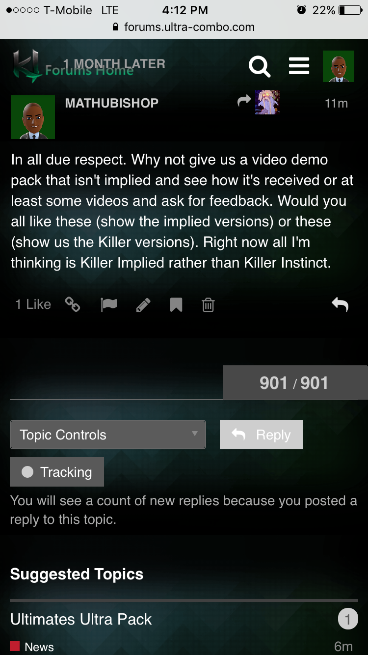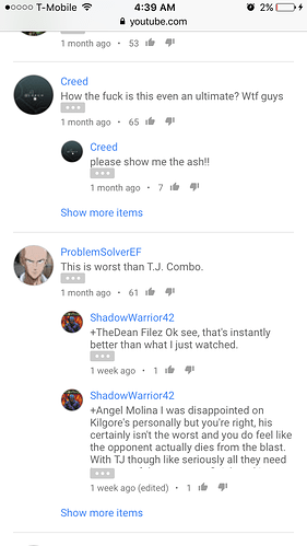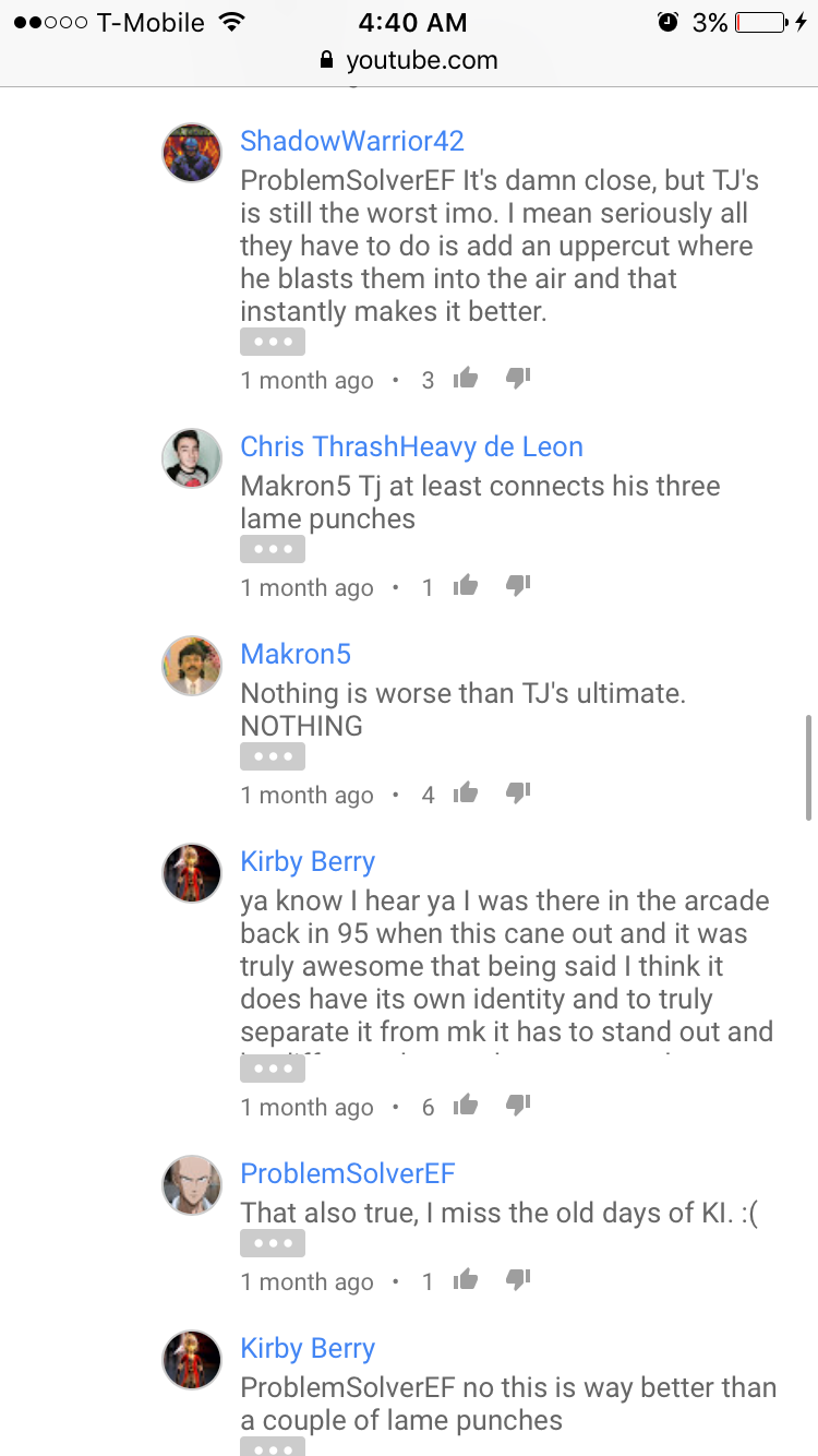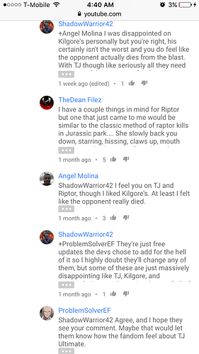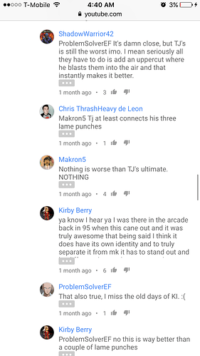 This KI community is just a small portion of the people that play the game. I’m going to say that a lot of casuals probably don’t even check the forums but they are important. Regardless if the devs chose to do it this way it should be changed. The Ultimates are awful and need help. Whether you like it or not. The way they are presented surely isn’t giving any players a reason to pick the game back up. This Killer Implied rather than Killer Instinct is nonsense. At this point I wish they had just left them out. I’m posting the first few comments from KI Riptors Ultimate on YouTube. I definitely read a lot of negativity.