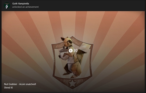 Xbox has a ton of awful independent games on sale at the moment. Today I got the NUT GRABBER achievement on a game called Shred It!.
