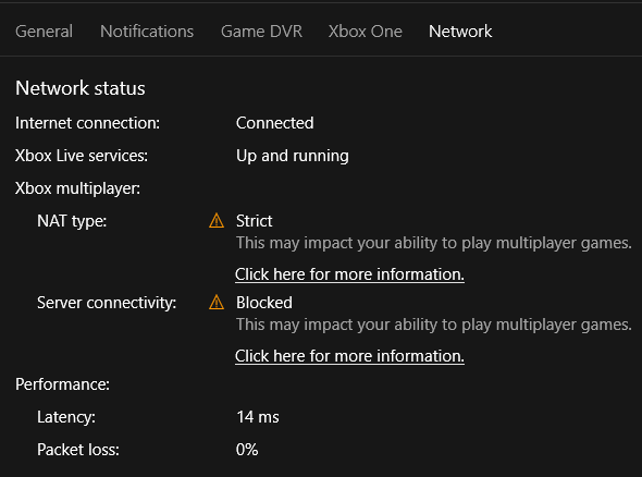 Also, if you haven’t done so, please check your NAT type and follow the instructions here to set it to OPEN. Xbox Support